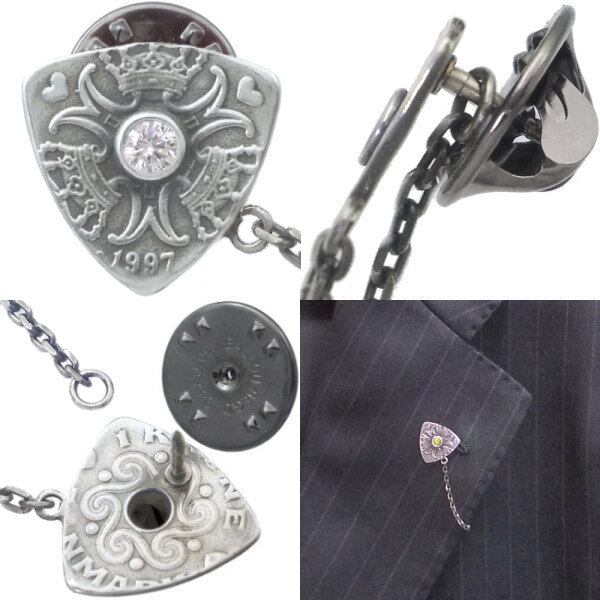 (4月)ジルコニア クローネ コイン ピック チェーン シルバー ピンバッジ ピンズ*BK-1106