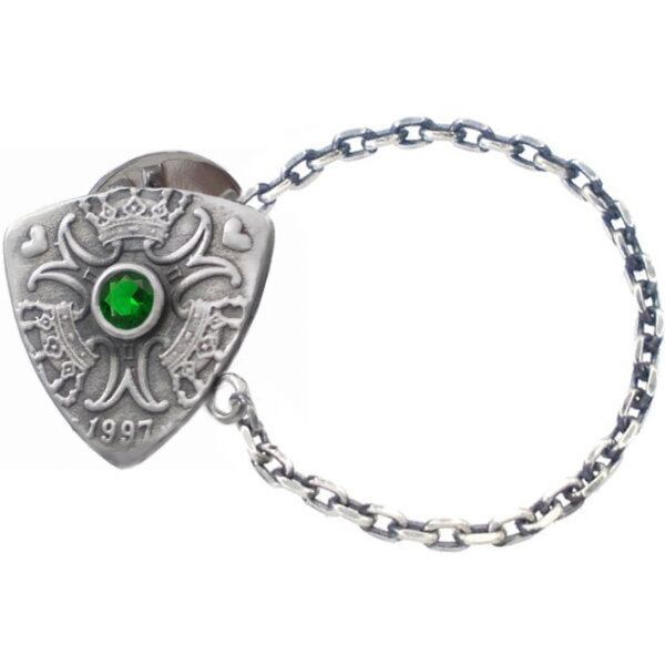 (5月)エメラルドグラス クローネ コイン ピック チェーン シルバー ピンバッジ ピンズ*BK-1106