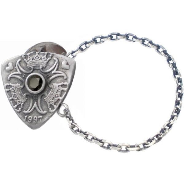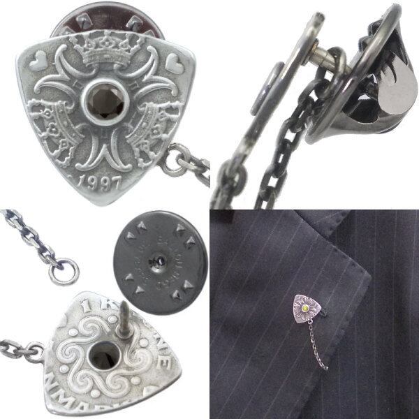 ブラックCZ クローネ コイン ピック チェーン シルバー ピンバッジ ピンズ*BK-1106