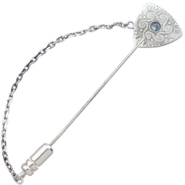 (3月)アクアマリン ホワイト クローネ ピック コイン チェーン シルバー ラペルピン 誕生石*BK-1208