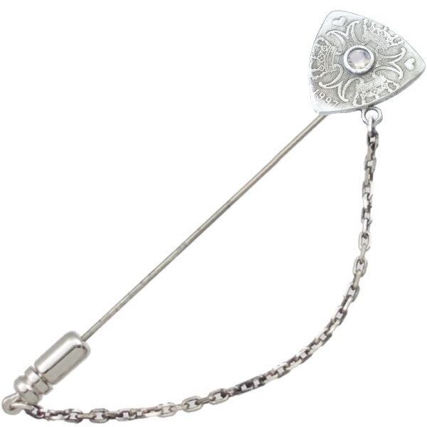 (6月)ブルームーンストーン ホワイト クローネ ピック コイン チェーン シルバー ラペルピン 誕生石*BK-1208