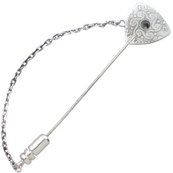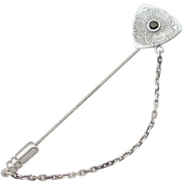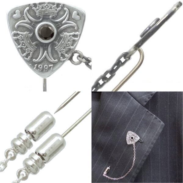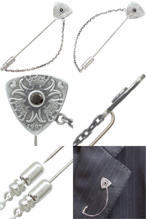 ブラックCZ ホワイト クローネ ピック コイン チェーン シルバー ラペルピン*BK-1208