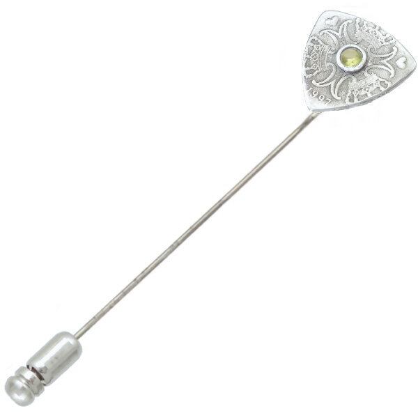 (8月)ペリドット ホワイト クローネ ピック コイン シルバー ラペルピン 誕生石*BK-1209