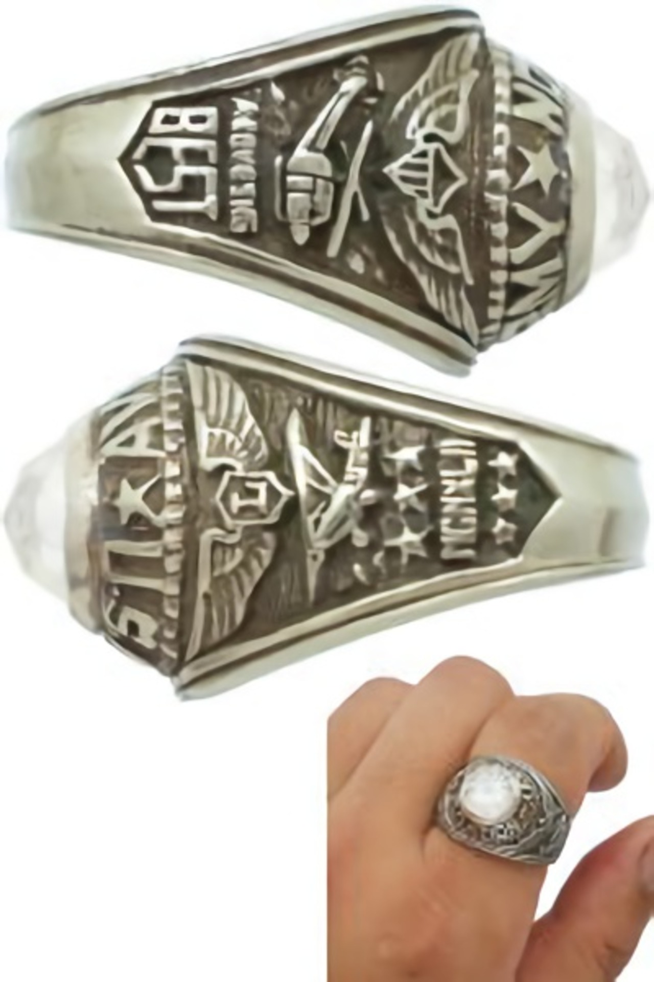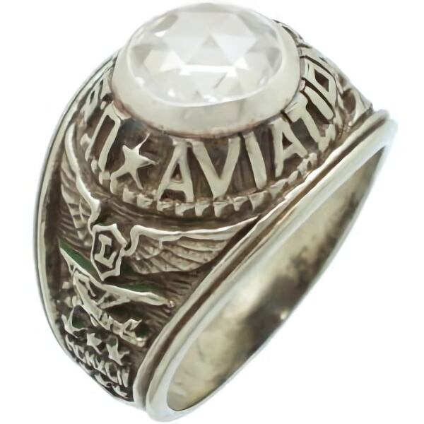 気品のあるカットが印象的なローズカットのジルコニアをセッティングしたカレッジリング。プロペラ機とヘリがデザインされたUSアーミーデザインはスタンダードな中にもビンテージな雰囲気もあり普段使いにも馴染みやすい。