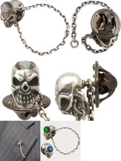 ★迫力の表情のスカルに5mmのストーンをセッテングしたシルバーピンズ。