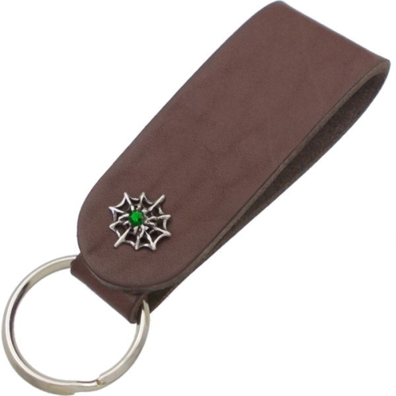 (5月)エメラルドグラススパイダー ブラウンレザー キーホルダー 誕生石*BH-016