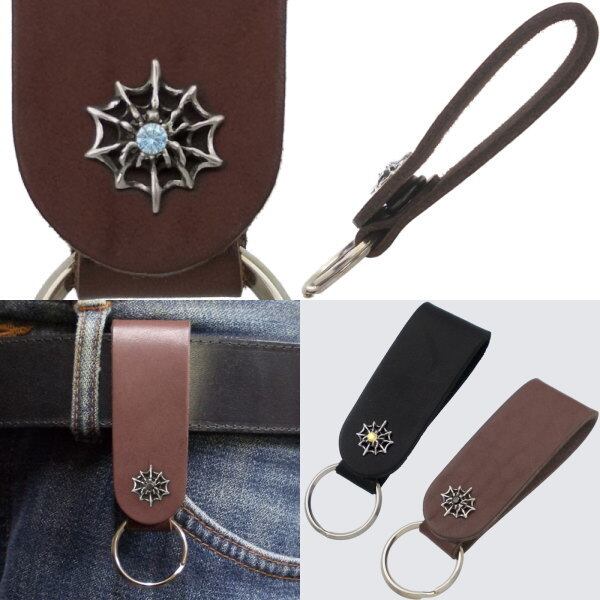 ネイティブアメリカンのドリームキャッチャーに象徴される幸運、金運を掴むと言われる蜘蛛の巣とバースデーストーンの良いとこ取りデザインをシルバー製コンチョに仕立てブラックとブラウンレザーのループキーホルダーに合せた使うほど馴染むサドルレザー製。