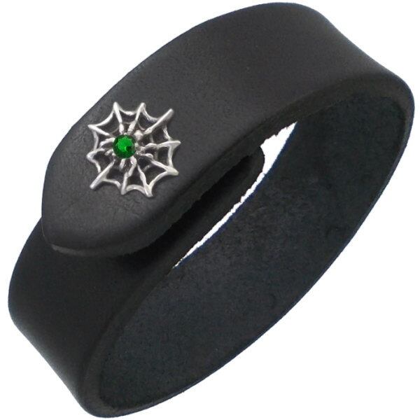 (5月)エメラルドグラス スパイダー ブラックレザー ブレスレット 誕生石*BB-1019
