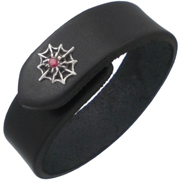 (7月)ルビー スパイダー ブラックレザー ブレスレット 誕生石*BB-1019