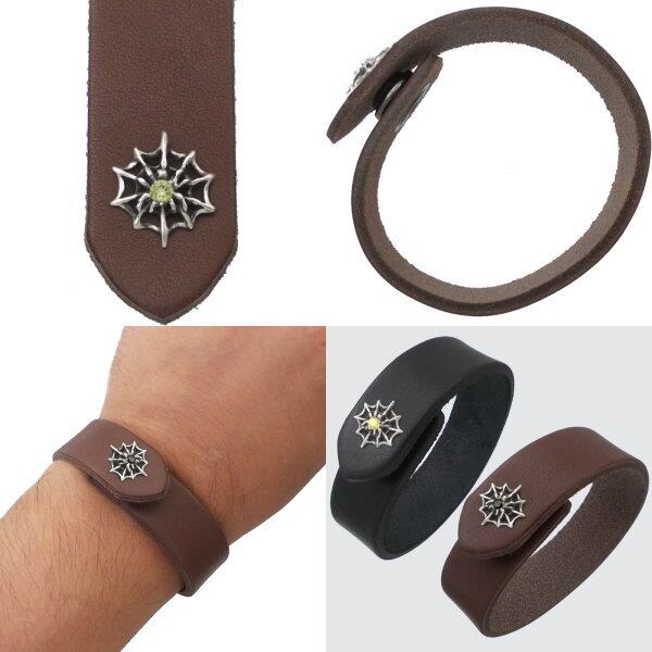 (8月)ペリドット スパイダー ブラウンレザー ブレスレット 誕生石*BB-1020
