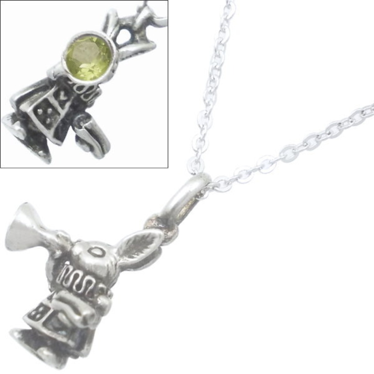 アリスを不思議の国へと誘うウサギがシルバーに!ハートが散りばめられた布告役姿にストーンをセットしたラッパの物語を象徴する姿をデザインしたペンダント。