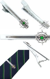 (5月)エメラルドグラス スパイダー シルバー925ネクタイピン 誕生石*BN-1011