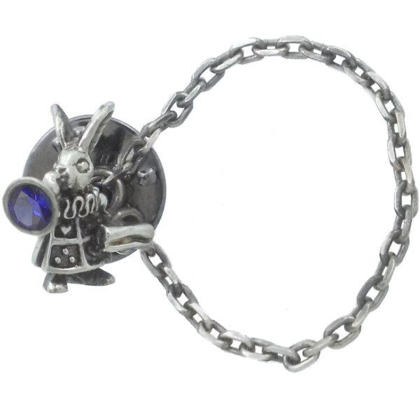 (9月)サファイア 布告役姿の白ウサギ チェーン シルバー ピンバッジ ピンズ*BK-1108