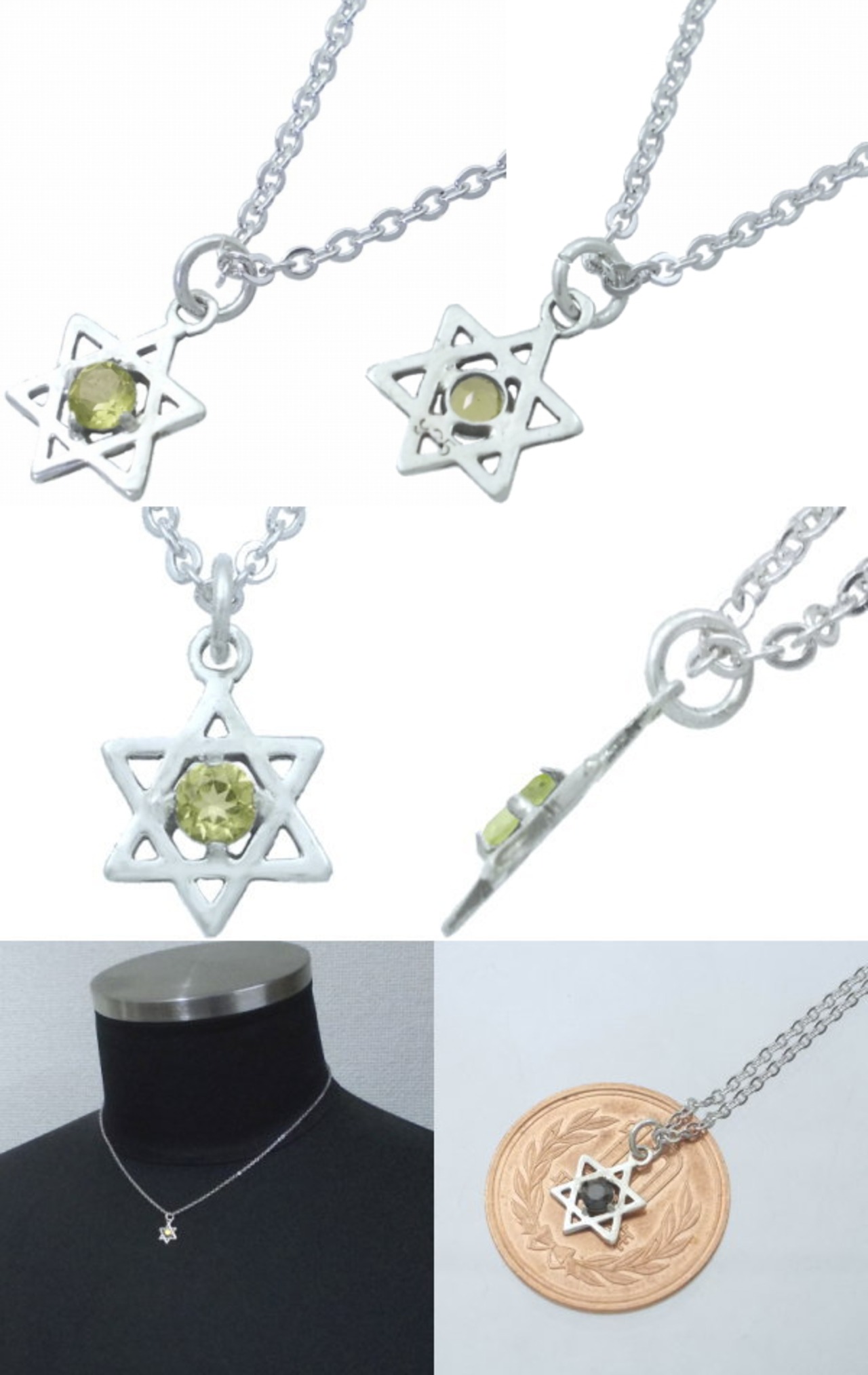 (8月)ペリドットヘキサグラム 六芒星 タイニー シルバー ペンダント ネックレス 誕生石*BP-1055