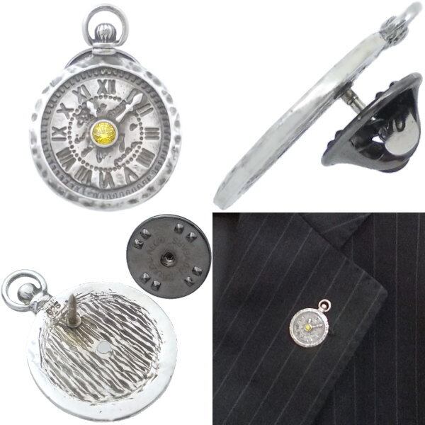 ★落ち着いた雰囲気の懐中時計と誕生石のさり気ないピンバッヂ。