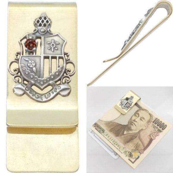 ★シルバーの気品あるヨーロピアンなエンブレムデザインのブラスマネークリップブラスマネークリップ。