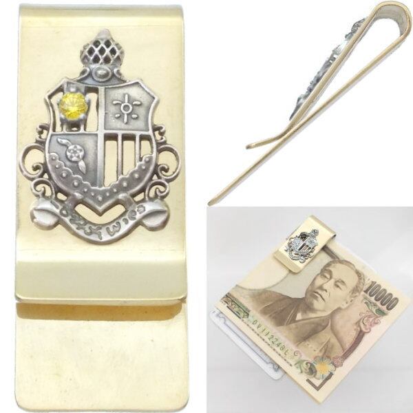 ★シルバーの気品あるヨーロピアンなエンブレムデザインのブラスマネークリップブラスマネークリップ。