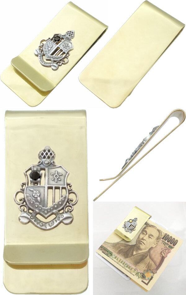 ★シルバーの気品あるヨーロピアンなエンブレムデザインのブラスマネークリップブラスマネークリップ。
