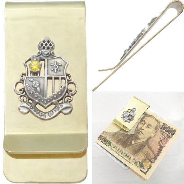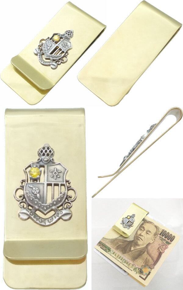 ★シルバーの気品あるヨーロピアンなエンブレムデザインのブラスマネークリップブラスマネークリップ。