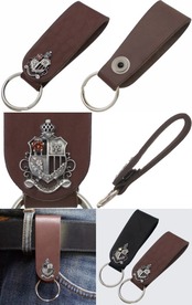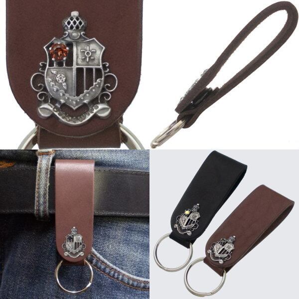 ★気品あるヨーロピアンなエンブレムデザインと誕生石のサドルレザー製キーホルダー。
