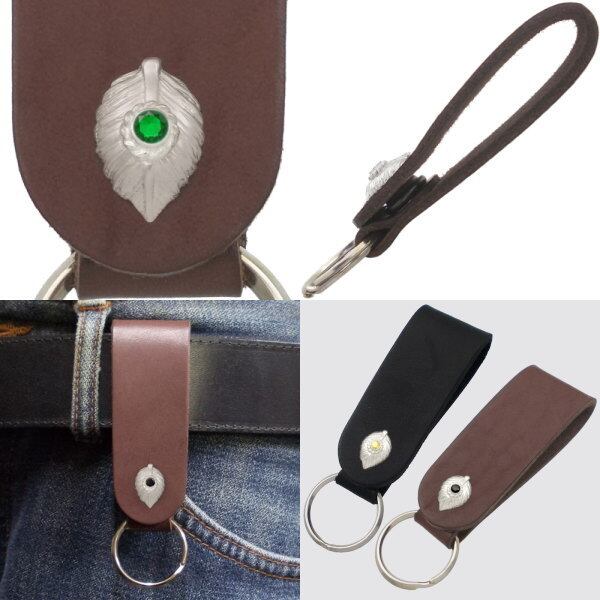 誕生石が選べるのはモチロンのことブラック、イエローのジルコニアも選べ、フェザーも2パターンの仕上げとブラックとブラウンレザーとの多彩な組み合わせで年齢を選ばずお勧めできるスタンダードなキーホルダーとして日常使いにオススメです。