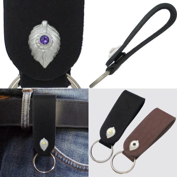 誕生石が選べるのはモチロンのことブラック、イエローのジルコニアも選べ、フェザーも2パターンの仕上げとブラックとブラウンレザーとの多彩な組み合わせで年齢を選ばずお勧めできるスタンダードなキーホルダーとして日常使いにオススメです。