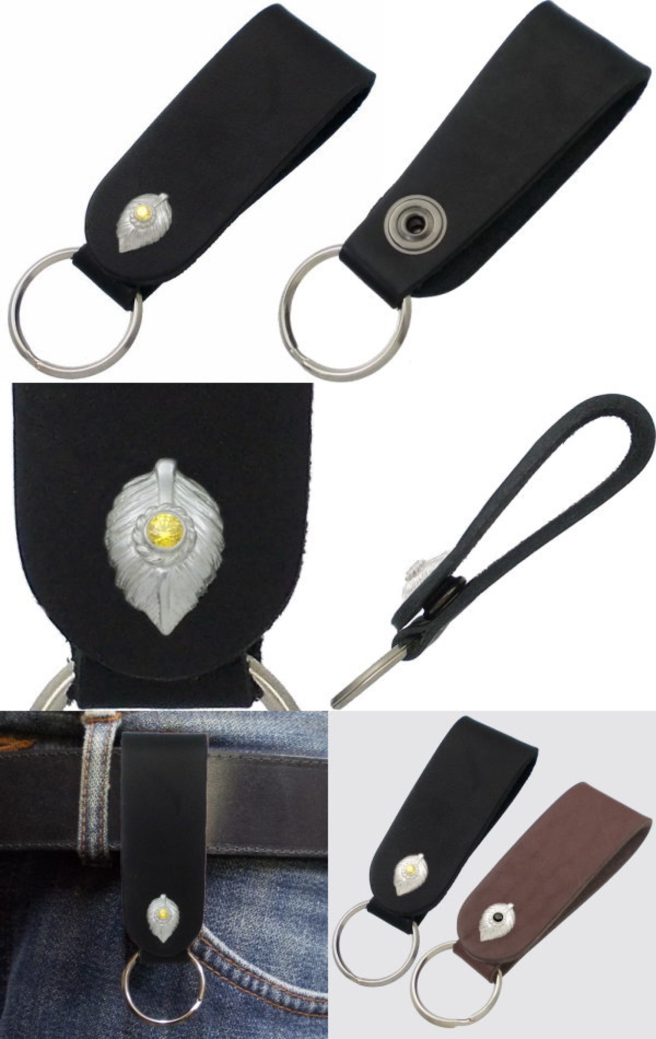 誕生石が選べるのはモチロンのことブラック、イエローのジルコニアも選べ、フェザーも2パターンの仕上げとブラックとブラウンレザーとの多彩な組み合わせで年齢を選ばずお勧めできるスタンダードなキーホルダーとして日常使いにオススメです。