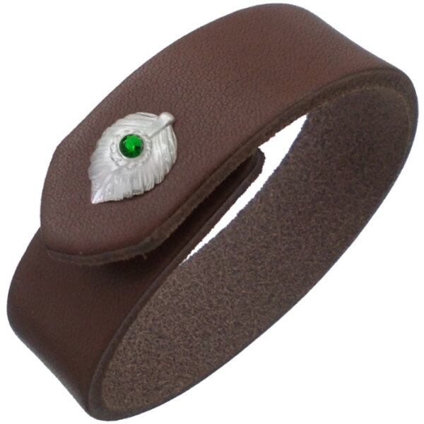 (5月)エメラルドグラス ホワイト ネイディブ ハート フェザー ブラウンレザー ブレスレット 誕生石*BB-1023