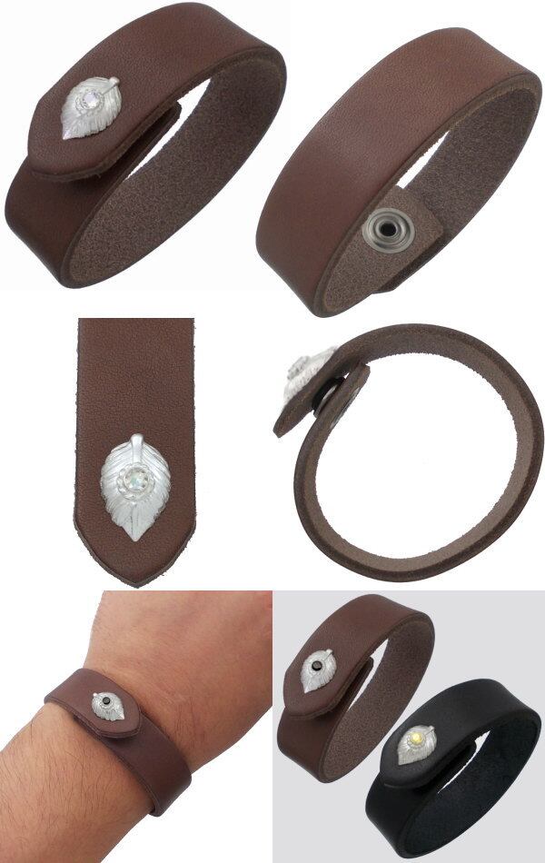 ★鷲の胸の羽「ハート」とハンドメイドの石枠とコンビのサドルレザーブレス。