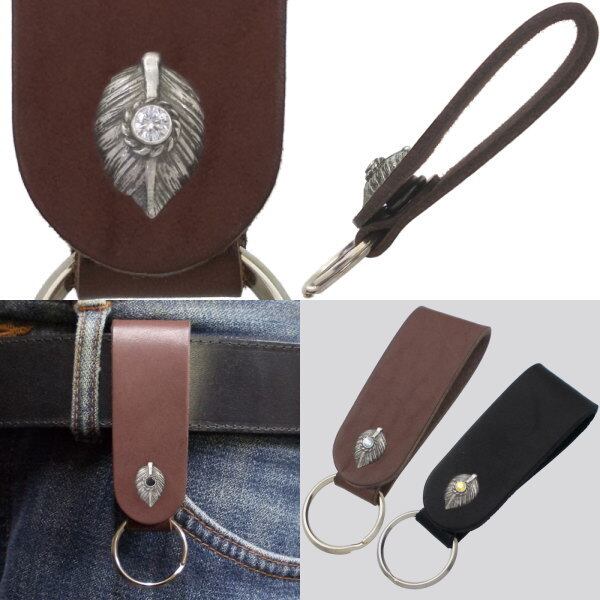 誕生石が選べるのはモチロンのことブラック、イエローのジルコニアも選べ、フェザーも2パターンの仕上げとブラックとブラウンレザーとの多彩な組み合わせで年齢を選ばずお勧めできるスタンダードなキーホルダーとして日常使いにオススメです。