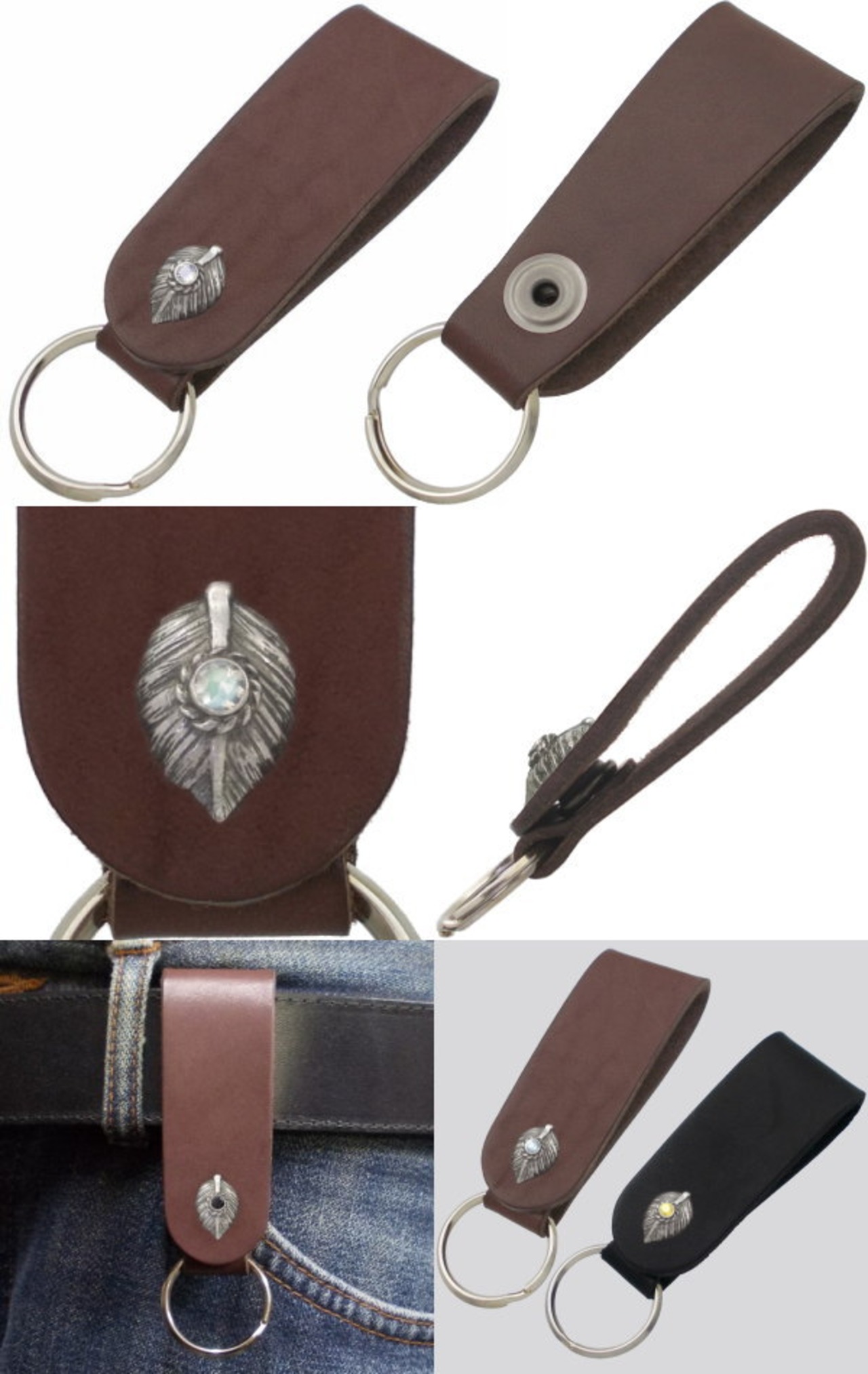 誕生石が選べるのはモチロンのことブラック、イエローのジルコニアも選べ、フェザーも2パターンの仕上げとブラックとブラウンレザーとの多彩な組み合わせで年齢を選ばずお勧めできるスタンダードなキーホルダーとして日常使いにオススメです。