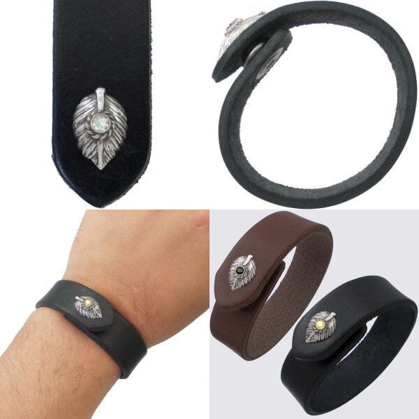 ★鷲の胸の羽「ハート」とハンドメイドの石枠とコンビのサドルレザーブレス。