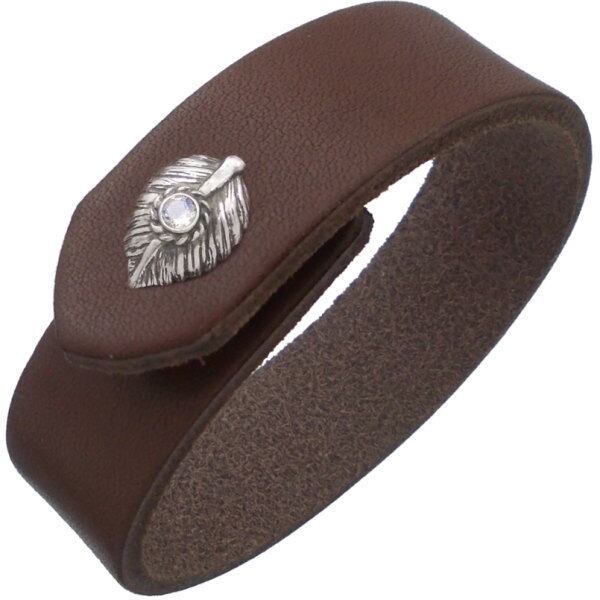 ★鷲の胸の羽「ハート」とハンドメイドの石枠とコンビのサドルレザーブレス。