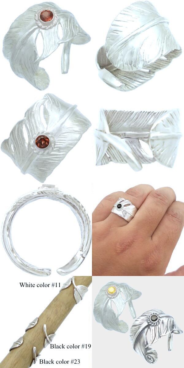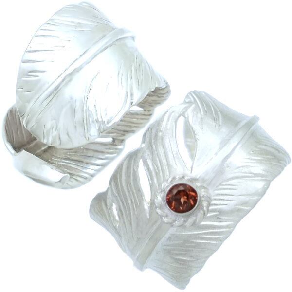 (1月)ガーネット ホワイト フリー フェザー シルバー リング 誕生石*BR-1046
