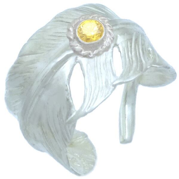イエローC Z ホワイト フリー フェザー シルバー リング△キュービックジルコニア使用*BR-1046