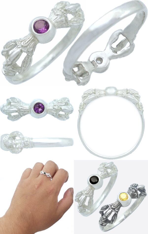 災いを打ち破り幸運を引き寄せる法具をバースデーストーンと共に癖のないデザインにアレンジ。さり気ないホワイトは女性にもオススメ。立体感とモチーフの陰影も映えるブラックとの2種類の仕上げ。