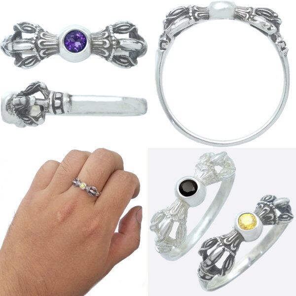 災いを打ち破り幸運を引き寄せる法具をバースデーストーンと共に癖のないデザインにアレンジ。さり気ないホワイトは女性にもオススメ。立体感とモチーフの陰影も映えるブラックとの2種類の仕上げ。