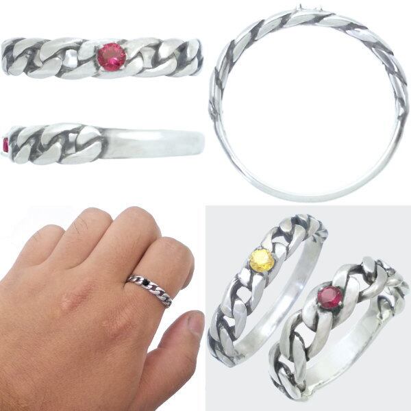 (7月)ルビー ブラック ミディアム キヘイ シルバー リング 誕生石*SR-12