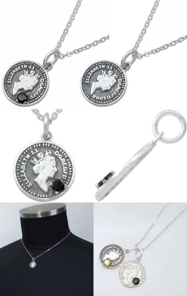 ブラックCZ ブラック エリザベス コイン シルバー ペンダント ネックレス△キュービックジルコニア使用*BP-1062