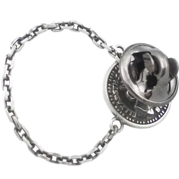 ブラックCZ ホワイト ブラック エリザベス コインチェーン シルバーピンバッジ ピンズ*BK-1119