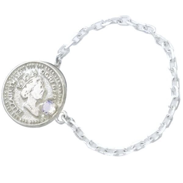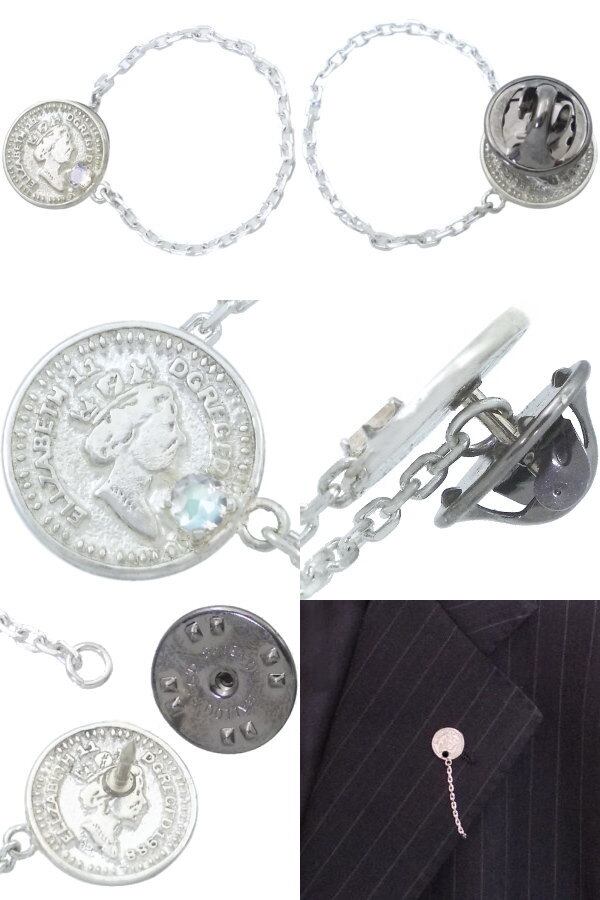 (6月)ブルームーンストーン ホワイト ホワイト エリザベス コインチェーン シルバーピンバッジ ピンズ 誕生石*BK-1121