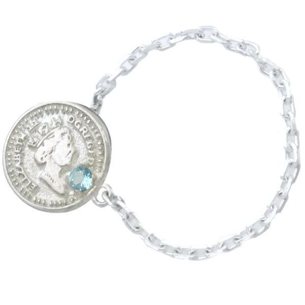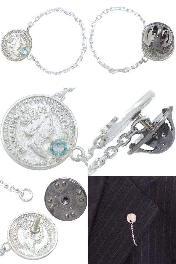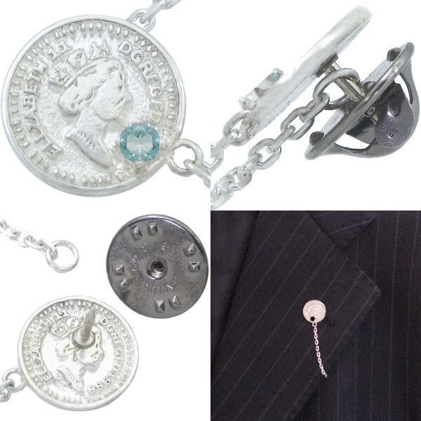 (11月)ブルートパーズ ホワイト ホワイト エリザベス コインチェーン シルバーピンバッジ ピンズ 誕生石*BK-1121