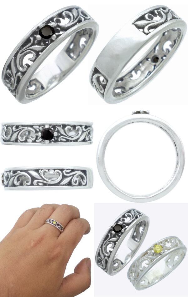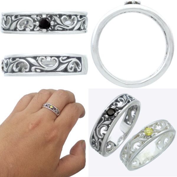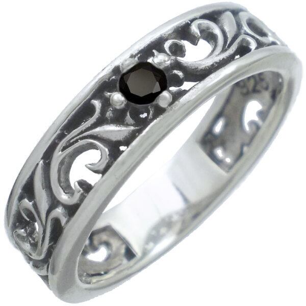 ブラックCZ ブラック アラベスク バンド シルバーリング *BR-1050