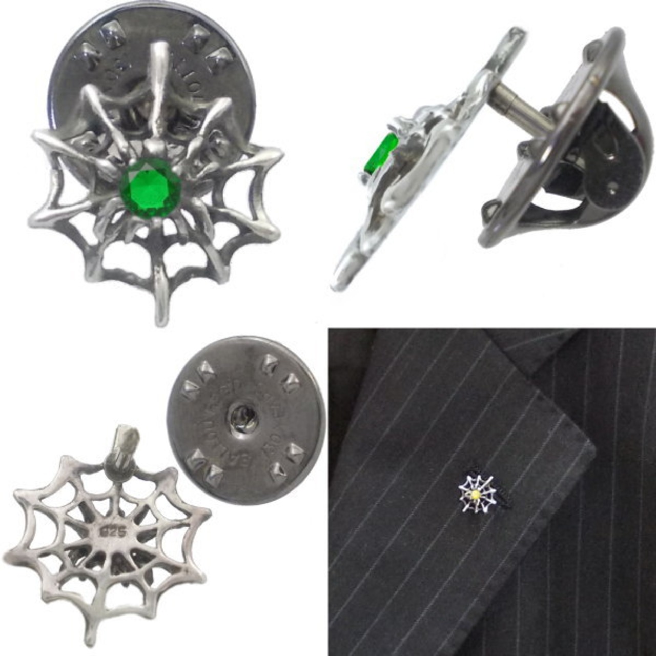 ★蜘蛛のボディにバースデーストーンが輝く女性にもオススメなピンバッヂ。