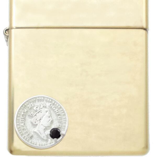 ★エリザベス女王のシルエットの小さめコインモチーフがワンポイントのブラスボディジッポ。