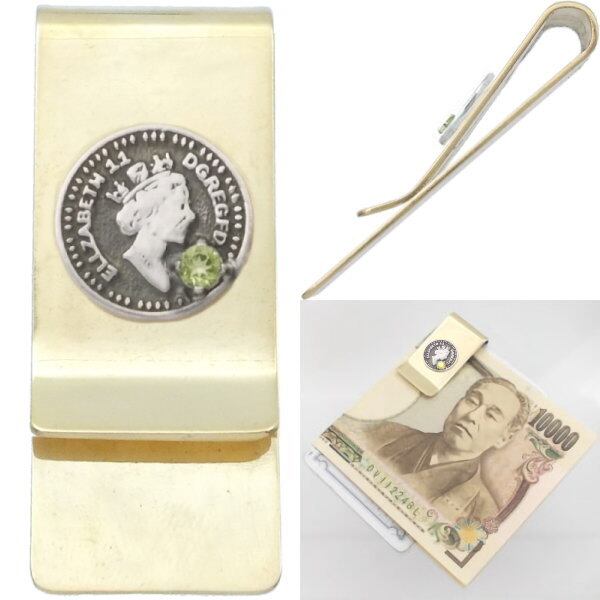 (8月)ペリドット ブラック エリザベス コイン スリム ブラスマネークリップ 誕生石*BM-1034