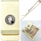 ★エリザベス女王のシルエットの小さめコインモチーフがワンポイントのブラスマネークリップ。