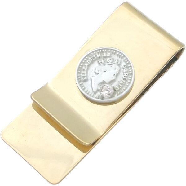 ★エリザベス女王のシルエットの小さめコインモチーフがワンポイントのブラスマネークリップ。