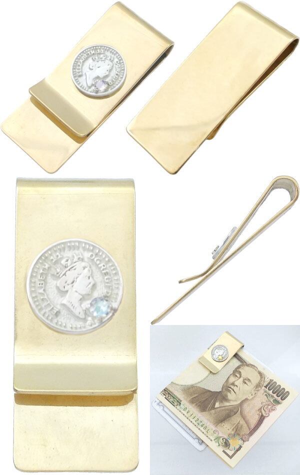 ★エリザベス女王のシルエットの小さめコインモチーフがワンポイントのブラスマネークリップ。