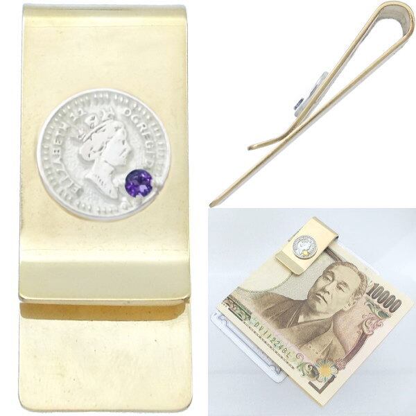 ★エリザベス女王のシルエットの小さめコインモチーフがワンポイントのブラスマネークリップ。